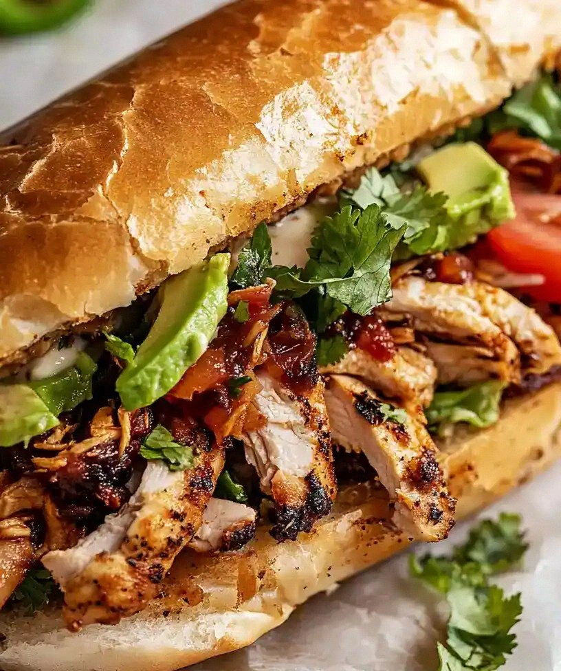 Picture this: a golden, crusted roll that crackles like a crisp autumn leaf, a succulent chicken breast kissed by smoky chipotle, and a medley of fresh, crunchy toppings that dance on your tongue. The aroma of toasted bread mingles with the earthy scent of adobo, while the sight of creamy avocado and bright red tomato slices pulls you in. You hear the satisfying sizzle as the chicken hits the pan, the subtle pop of jalapeño pickles, and the gentle clink of a spoon against a bowl of beans. Your senses are fully engaged, and the anticipation of that first bite is electric.
